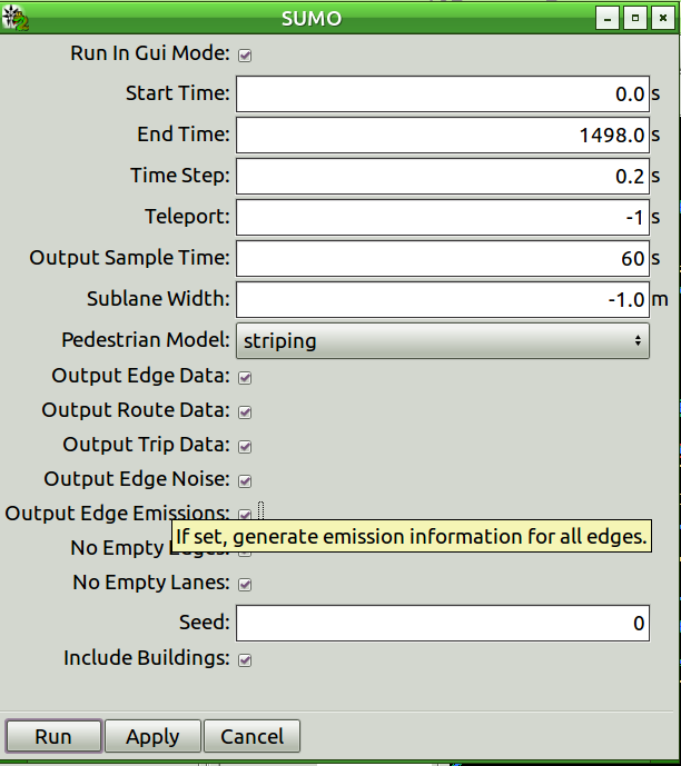 simulation settings from the SUMO pop-up dialog, as shown in Fig.
