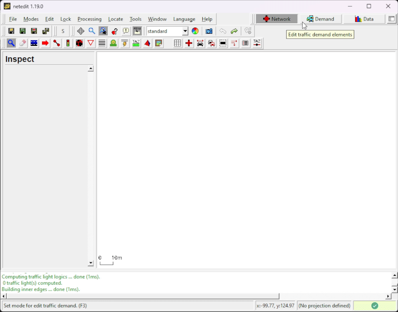 Open netedit and create a new network by selecting File->New Network or using the shortcut Ctrl + N